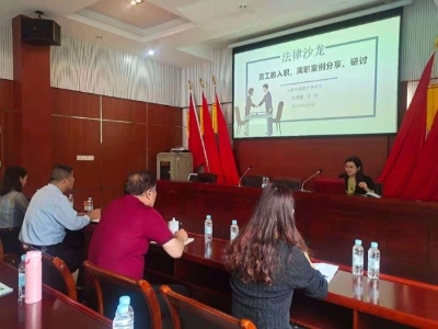 活动邀请了上海申诚律师事务所的吴博慧律师为企业管理人员开展《员工入职与离职案例分享研讨》讲座。讲座有针对性地为企业安全生产、用工规范、合同签订等提供政策性指导服务。随后,海湾司法所所长阮雷红主持并开展政法队伍教育整顿意见征求座谈会,通过发放调查问卷及现场征询等方式了解企业法治需求及对司法所的意见建议。活动中,青年党员陈琪与王梦芸为在场的职工表演了讲“典”说法脱口秀,并开展《民法典》有奖竞答活动,用寓教于乐的普法宣传方式让法律深入人心,得到了工厂员工的一致好评。
