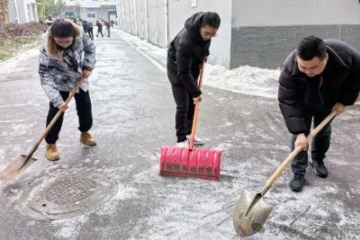 用“热心”承载“责任”,以实实在在的行动彰显“为群众办实事”的初心与使命。大家拿着铁锹、扫帚等工具相互配合、热情有序地开展清雪活动,经过大家的共同努力,江北大院各干道上的积雪被清理干净,道路变得干净通畅,保障了来往职工的出行和车辆出行安全。