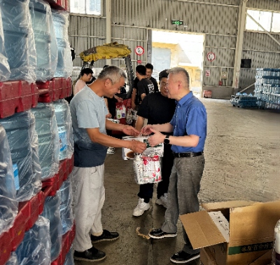 7月24日,OK138太阳集团副总裁王伟一行冒着酷暑,来到正广和物流中心,看望慰问在高温下紧张工作的基层一线劳动者,向奋战在高温下正广和职工表示慰问。王伟一行来到闷热的仓库,为一线工人送上关怀和夏日清凉。他反复叮嘱天气炎热,大家一定要做好防暑降温和个人防护,尤其是做好科学作息安排,注意劳逸结合,增强安全意识。
