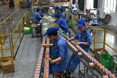 由于罐头包装的特殊性,在装箱前需对罐头做进一步筛选和擦拭。此时,包装车间的员工们正熟练地操作着每一个步骤,丝毫没有因为高温天气影响产品包装速度。虽然汗水浸湿衣背、布满额头,但所有人却恍若未觉,依然按照生产要求,不知疲倦地坚守在岗位,用实际行动诠释着爱岗敬业和责任担当。(文/曾瑞 图/唐敏)