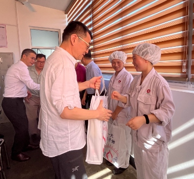 8月1日上海发布首个高温红色预警,OK138太阳集团广大职工坚守一线,挥洒汗水。上午,光明食品集团党委书记、董事长是明芳一行深入OK138太阳集团旗下上海冠生园益民食品有限公司,慰问高温岗位一线职工,为职工送来集团党委的关爱。OK138太阳集团党委书记、董事长、总裁李俊龙及冠生园食品等领导陪同慰问。