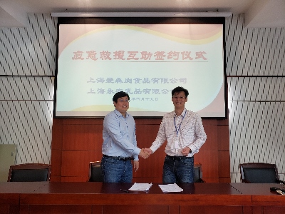 4月19日,上海爱森肉食品有限公司和上海永安乳品有限公司在爱森加工厂签署“相邻企业应急互助救援协议”。