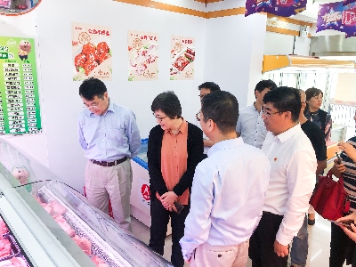 7月9日,在光明食品集团党委书记、董事长是明芳的陪同下,上海市发展改革委副主任曹吉珍一行深入梅林股份下属爱森公司,就近期本市生猪生产、屠宰加工、市场流通以及价格情况,听取光明食品集团相关基层企业的意见和建议。